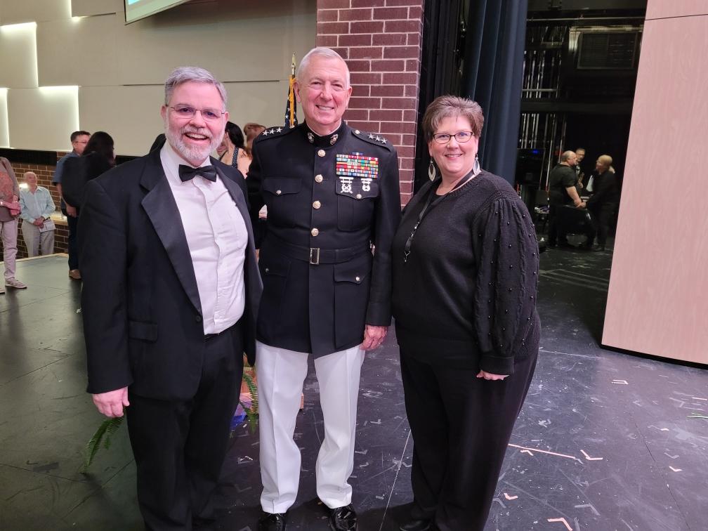 The Scotts pose with Lt. Gen. Steven Hummer who served multiple times as the Master of Ceremonies at the annual Patriotic concerts.